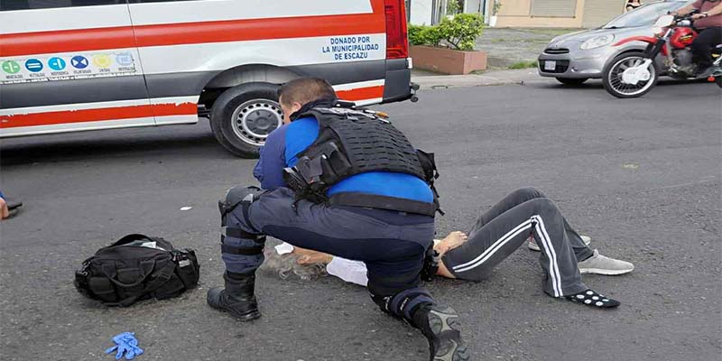Escoltada por Policía de Escazú fue trasladada en rojo al centro médico una adulta mayor luego de ser víctima de atropello en San Rafael de Escazú.