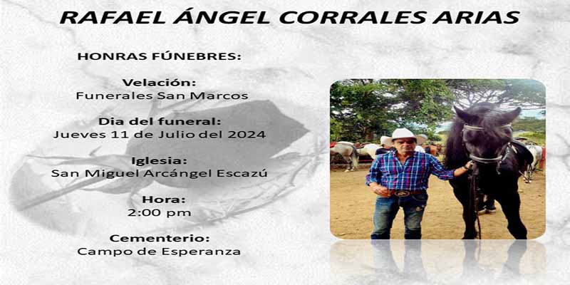 Funeraria San Marcos comunica el fallecimiento de Rafael Ángel Corrales Arias, su velación se realizará en funerales San Marcos.